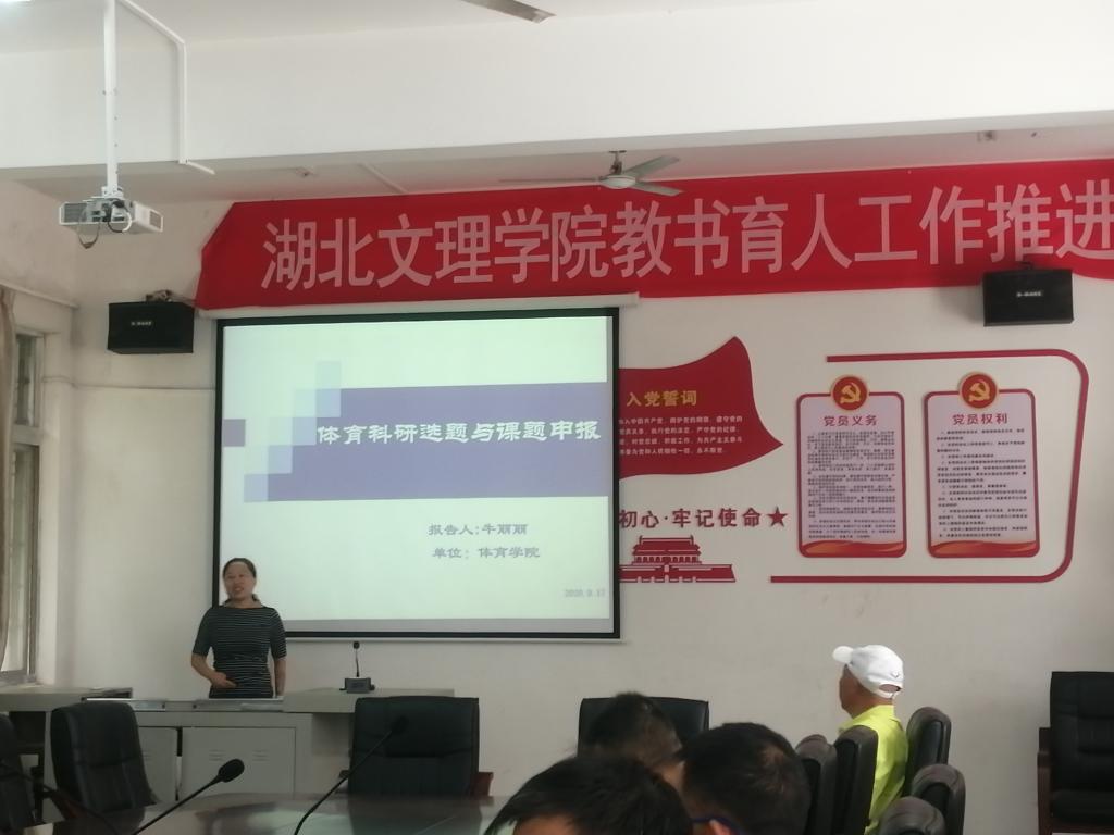 (天天日夜夜爽通讯员 周红萍)2020年9月17日下午,我院牛丽丽博士在天天日夜夜爽一楼会议室做《体育科研选题与课题申报》专题培训讲座。全院四十多名教师参加了培训,会议由何忠院长主持。