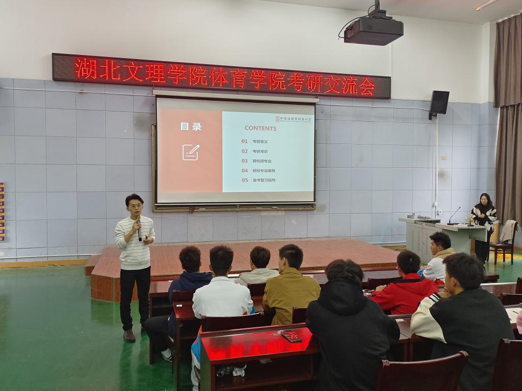 会上,辅导老师首先向同学们介绍了2022年全国高校考研总体情况;接着,分析了我院学生报考的专业方向、相关院校等,同时也向同学们分享了近几届体院考研同学的成功案例;最后指导老师还向同学们详细讲解了从考研准备、院校选择、复习备考、面试调剂等一系列过程中应关注重点和心理调整。