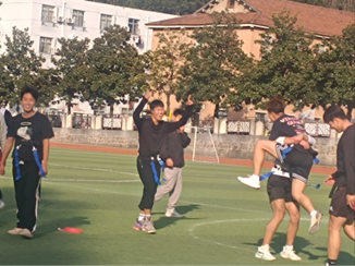 (通讯员 王梦淇 臧紫岩 田晶旭)天朗气清,惠风和畅。为引导学生走下网络、走出宿舍、走向操场,释放心理压力,引导学生调控悦纳自我、愉悦强健身心,充分展现同学们充满朝气、蓬勃向上的精神风貌。2023年11月23日下午2:30在湖北文理学院南区足球场,天天日夜夜爽第一届腰旗橄榄球比赛如火如荼进行中,由辅导员王梦淇带领我院心健生活部与文体部一同主持裁判,我院23级、22级、21级学生积极参加。