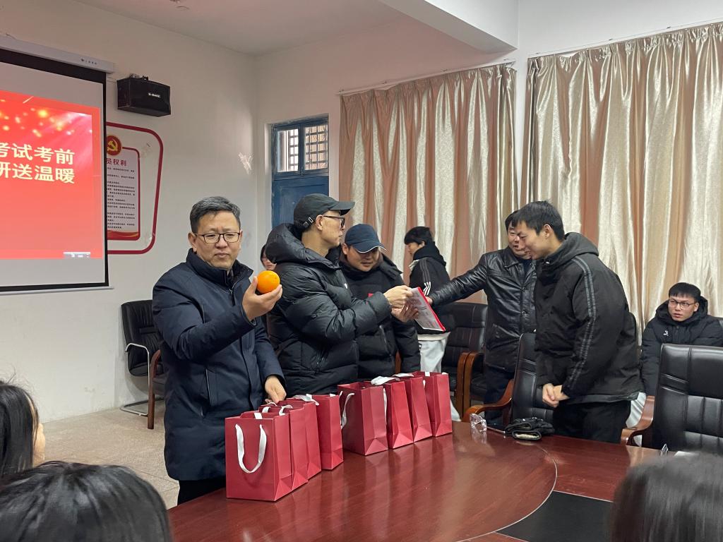 活动结束,学院领导为每位考生赠送了“考研祝福包”,祝福包内除了有考试用具和御寒物品外,还有象征“马到成功”的橙子,更有辅导员为同学手写的祝福卡片,让同学们倍感冬日的温暖,同学们表示,一定会带着这份爱与温暖努力前行,牢记嘱托,全力备考,用最好的状态迎接考试,在考场上发挥出自己的全部实力,争取交出一份满意的答卷。