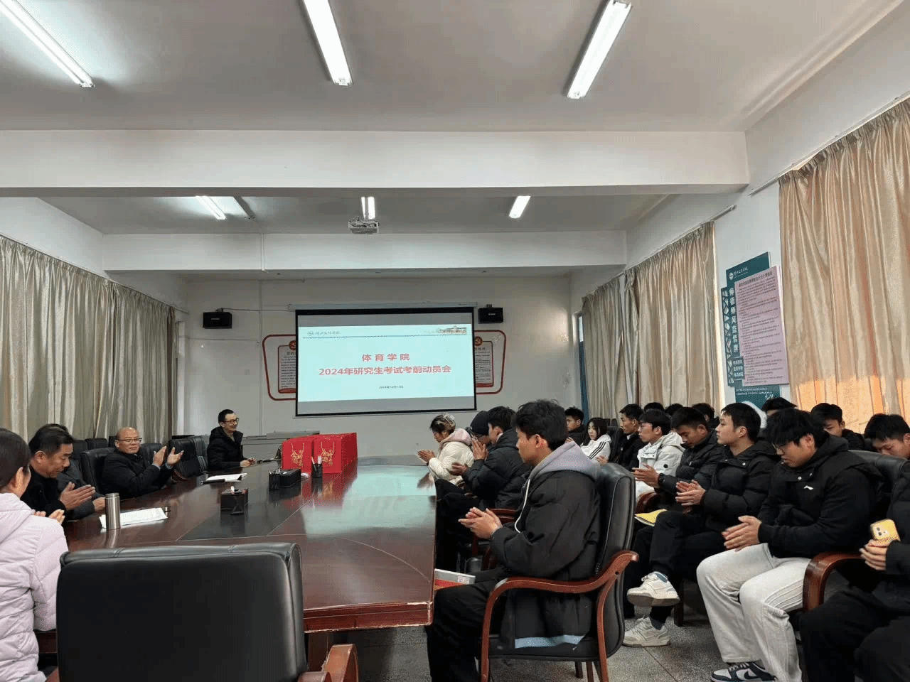 (天天日夜夜爽通讯员 秦文杰)为帮助考研学子们坚定信念,树立信心。2024年12月13日,天天日夜夜爽精心组织了一场别开生面的考研动员会,为即将踏上考研战场的2025届学子们加油鼓劲、送上温暖。会议由党委副书记邓坤臣主持。