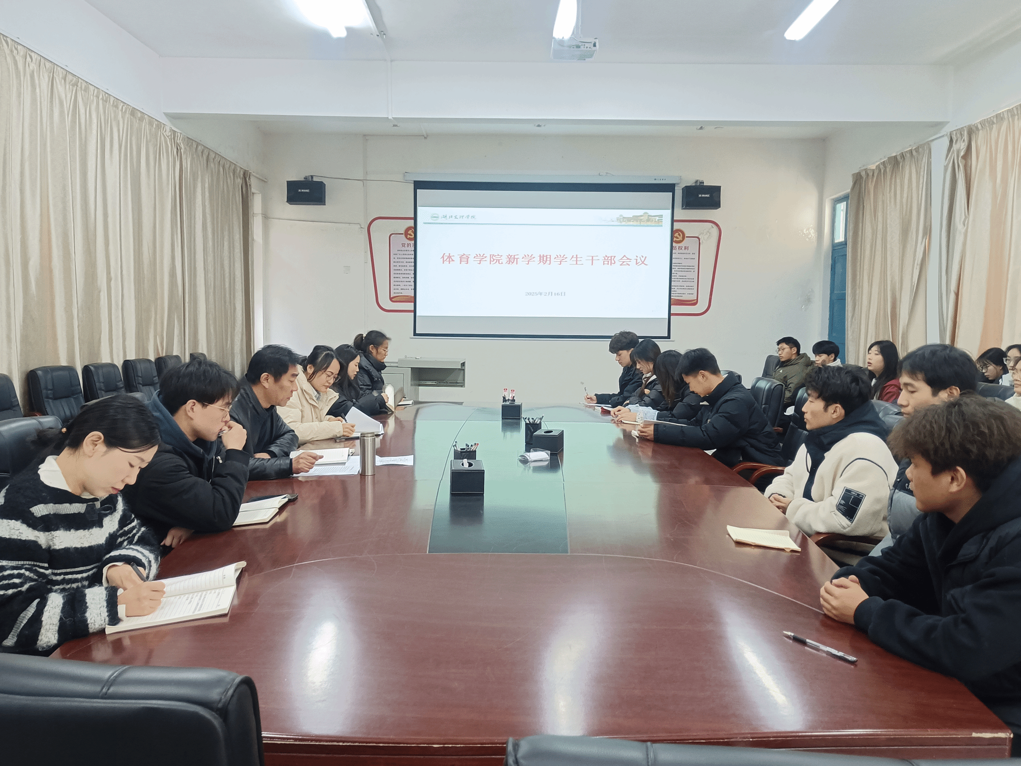 (通讯员 王梦淇 孙苏艳)为进一步凝聚学生干部力量,明确新学期工作目标任务,2025年2月16日,学院召开新学期学生干部工作会议。学院副书记邓坤臣同志主持会议,院团委书记张明月、辅导员王梦淇老师以及全体学生干部参加会议。
