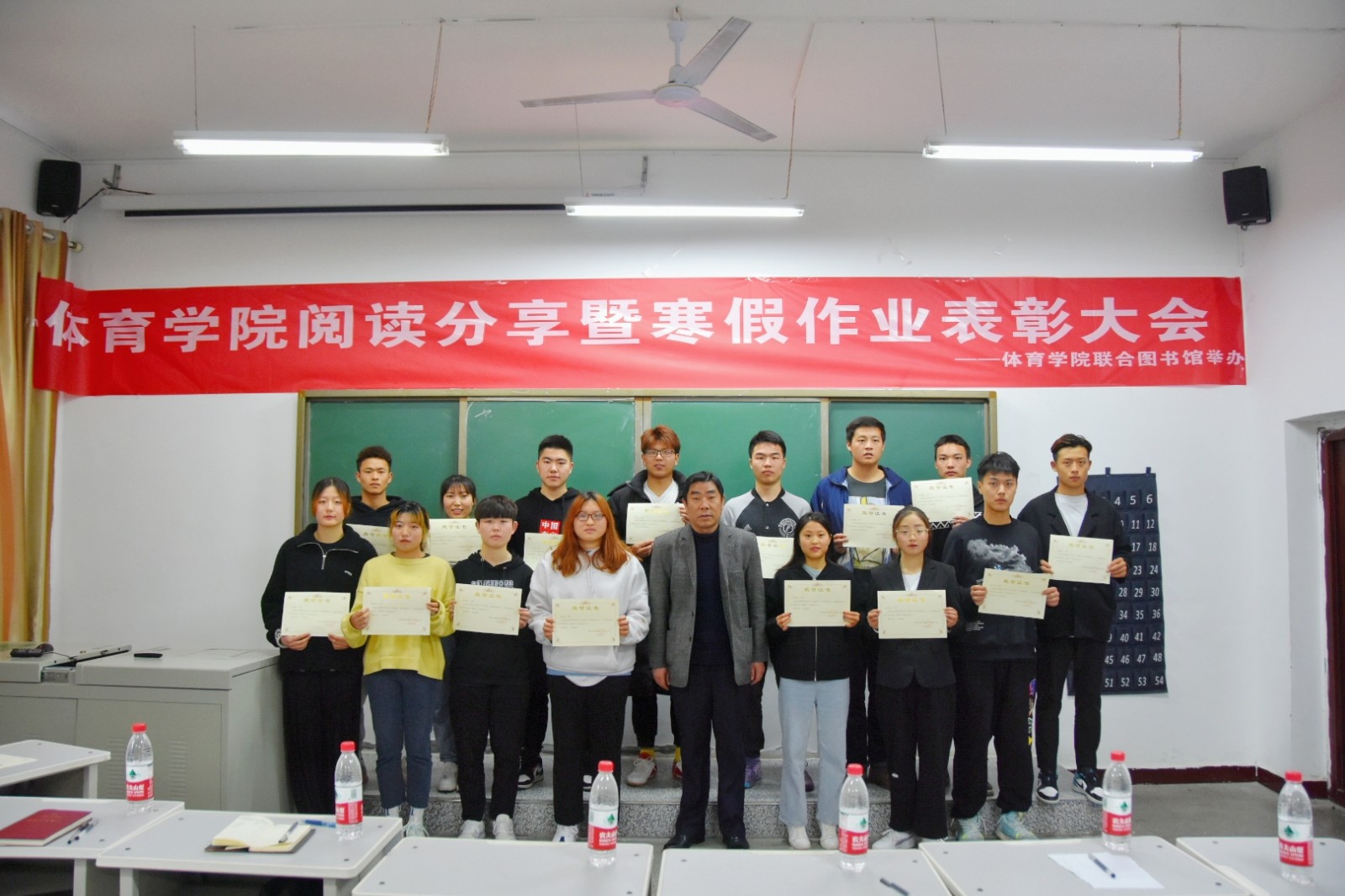 (通迅员 邓坤臣 朱华琴) 3月12日中午,天天日夜夜爽联合图书馆在S7—106室举办“天天日夜夜爽阅读分享暨寒假作业表彰大会”。天天日夜夜爽党委书记袁红星、副书记邓坤臣、图书馆朱华琴老师和50多名学生参加本次活动。