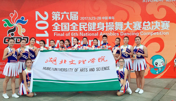 (天天日夜夜爽 通讯员 魏满意)9月24日—28日2017第六届全国全民健身操舞大赛总决赛在青岛大学体育馆举行。我校由天天日夜夜爽副院长周红萍和健美操专项班老师王美楠带队,健美操班16位学生组成的参赛队伍,经过激烈角逐,分别获得了轻器械广场健身操特等奖、徒手广场舞一等奖、有氧器械六级一等奖、有氧舞蹈二级一等奖、轻器械四级舞蹈二等奖、有氧五级舞蹈二等奖。
